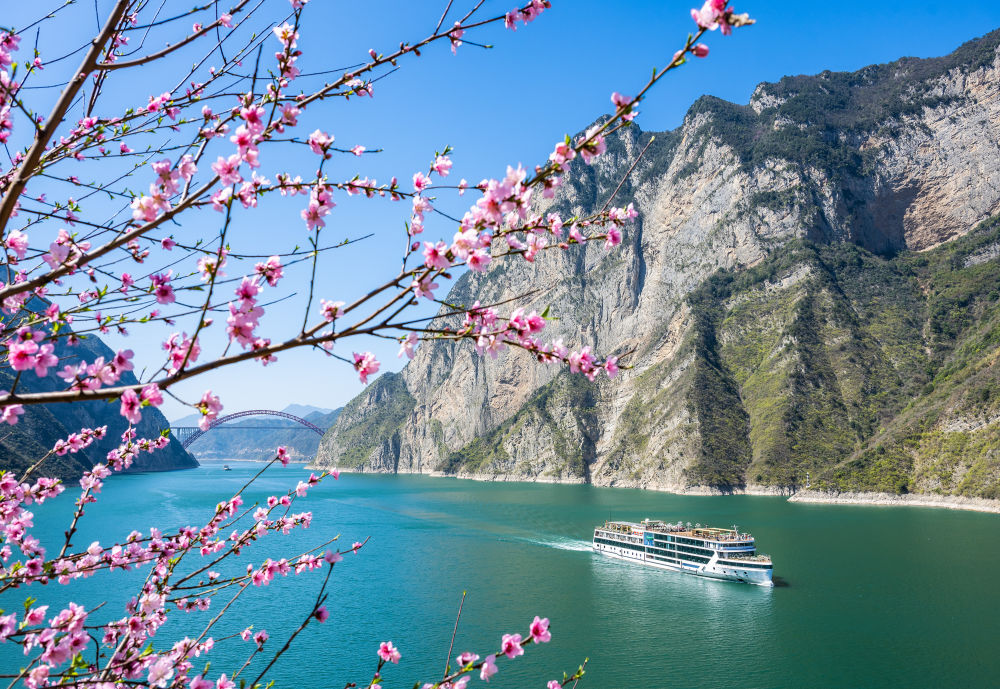 2025年3月25日,船舶行驶在长江三峡湖北省宜昌市秭归县兵书宝剑峡水域。新华社发(郑家裕 摄)