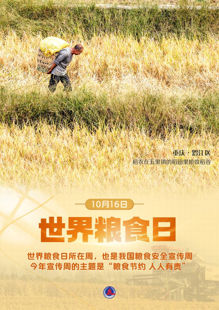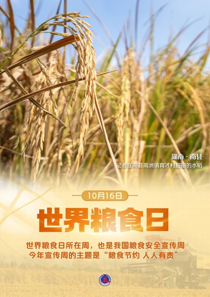 世界粮食日所在周,也是我国粮食安全宣传周。今年的主题是“粮食节约 人人有责”。