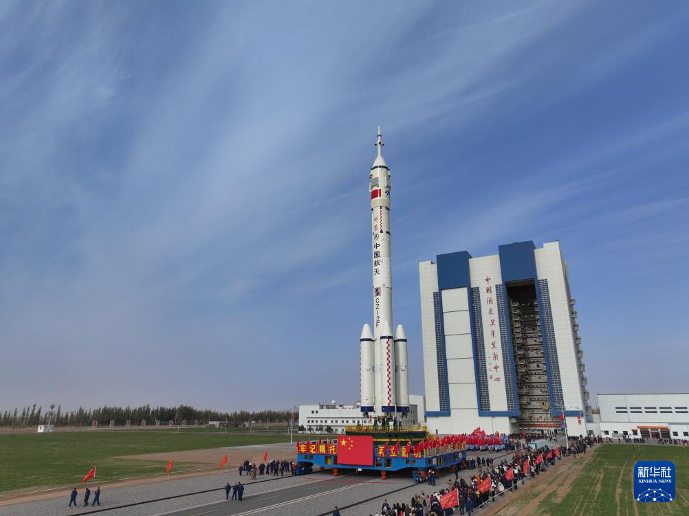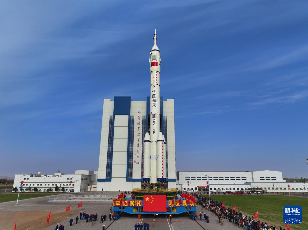 10月24日,神舟二十一号载人飞船与长征二号F遥二十一运载火箭组合体准备转运。新华社发(汪江波摄)