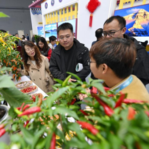 10月25日,参观者在杨凌农高会上了解盆栽蔬菜。新华社记者 李一博 摄