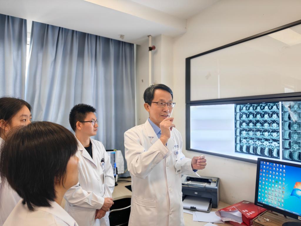 中日友好医院疼痛科主任樊碧发带领团队查房,探讨一位脊神经疼痛患者的治疗方案。(中日友好医院供图)