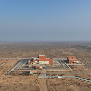 2025年10月24日在甘肃省民勤县航拍的2兆瓦液态燃料钍基熔盐实验堆厂房。新华社记者 金立旺 摄