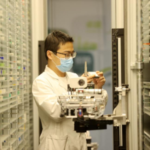 浙江德清县第三人民医院药师在智慧药房核对药品。新华社发(谢尚国摄)