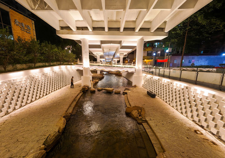 “高架桥下的河岸不适合植物生长,我们在亲水平台两侧林下空间,因地制宜设置休憩平台、园林步径,扩大群众观水、亲水及休闲活动空间。”项目设计师区展辉说,经过设计改造,东濠涌沿线更多“边角地”被激活为口袋公园。