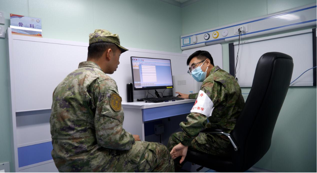 曲宏洋在“吉祥方舟”号医院船为官兵诊疗。张雅中健 摄