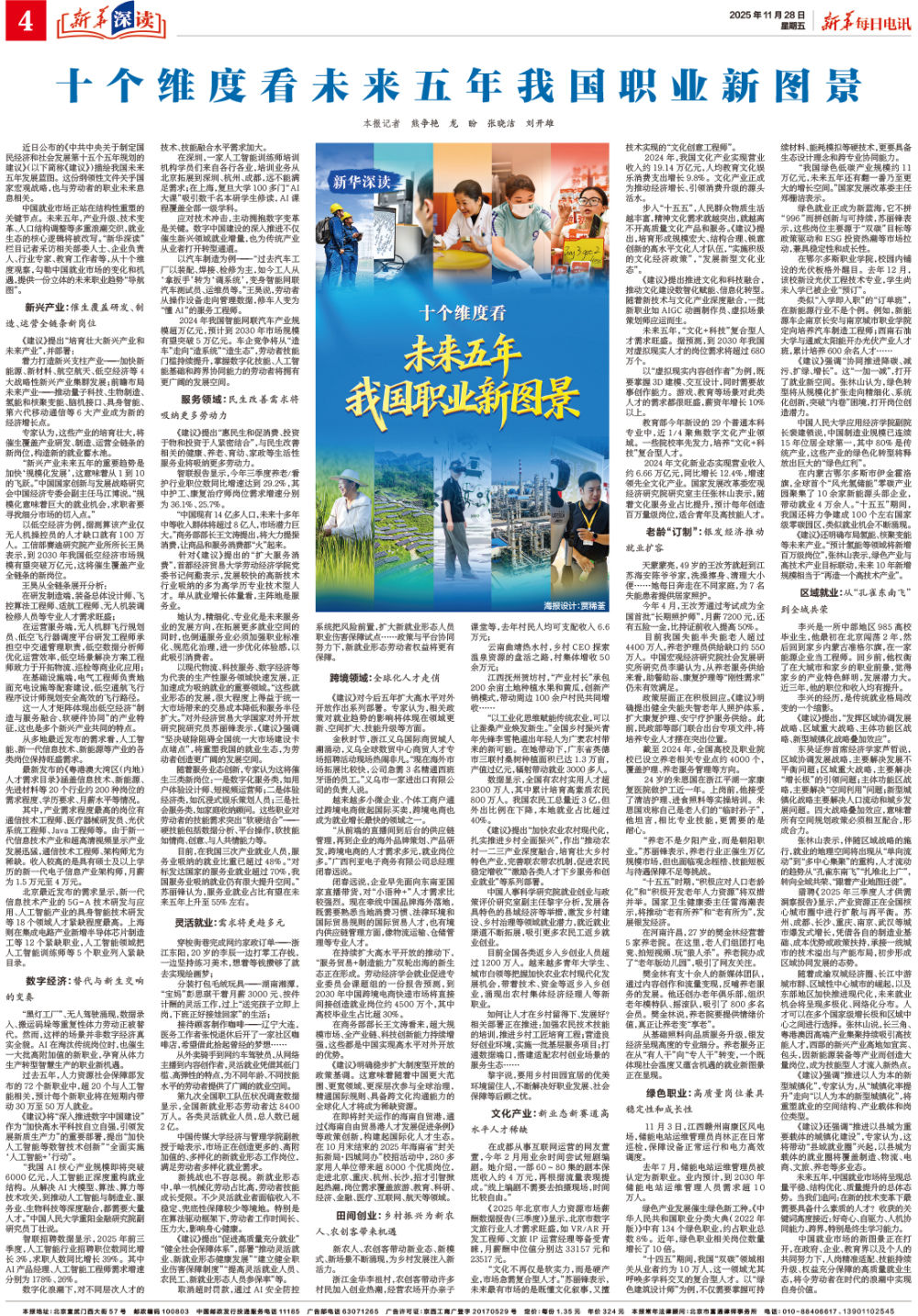 中国就业市场正站在结构性重塑的关键节点。未来五年,产业升级、技术变革、人口结构调整等多重浪潮交织,就业生态的核心逻辑将被改写。“新华深读”栏目记者采访相关部委人士、企业负责人、行业专家、教育工作者等,从十个维度观察,勾勒中国就业市场的变化和机遇,提供一份立体的未来职业趋势“导航图”。