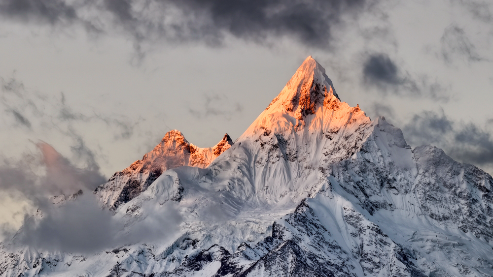 ↑2025年11月12日在云南省迪庆藏族自治州德钦县拍摄的梅里雪山“日照金山”景观。CICPHOTO/廖翔 摄