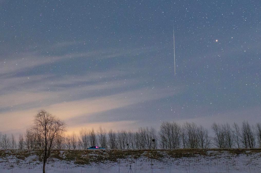 12月14日凌晨在黑龙江省伊春市伊美区拍摄的双子座流星雨。新华社发(李佳星摄)