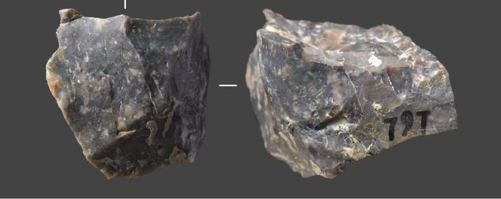 中国科学院古脊椎动物与古人类研究所副研究员陈福友介绍,自2024年新发现米浪沟湾地点后,2025年又新发现席家旧石器地点。该地点出土标本600余件,其中石制品约80件,动物化石400余件,主要有古棱齿象、披毛犀、羚羊等大型食草动物的化石,以及动物烧骨等。