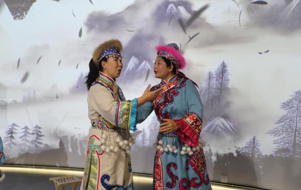 艺人在同江赫哲非遗数字体验馆内表演赫哲族伊玛堪。新华社记者 杨喆 摄
