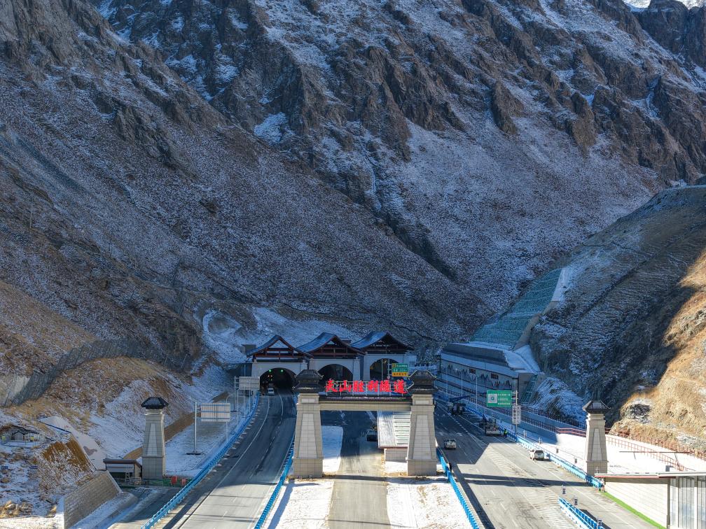 乌尉高速公路天山胜利隧道出口端(2025年12月23日摄)。新华社记者 王菲 摄