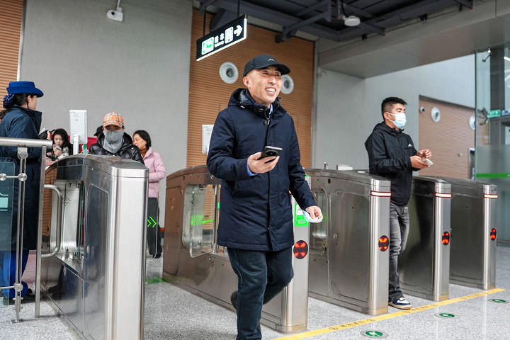2025年12月27日,市民在济南轨道交通4号线泉城公园站进站乘车。新华社记者 朱峥 摄