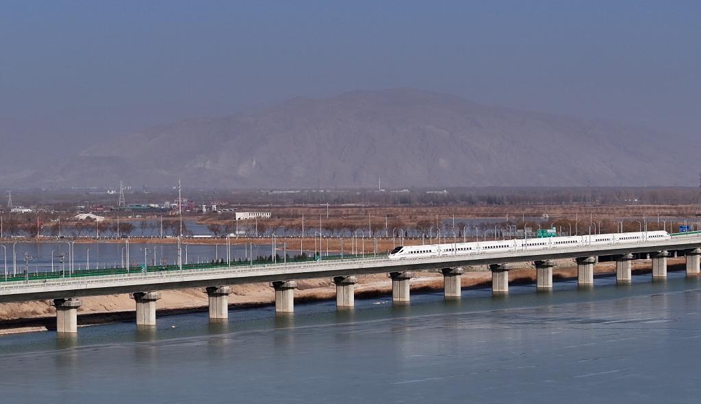 2025年12月23日,包银高铁首发列车D4667次动车组行驶在石嘴山境内。新华社记者 王鹏 摄