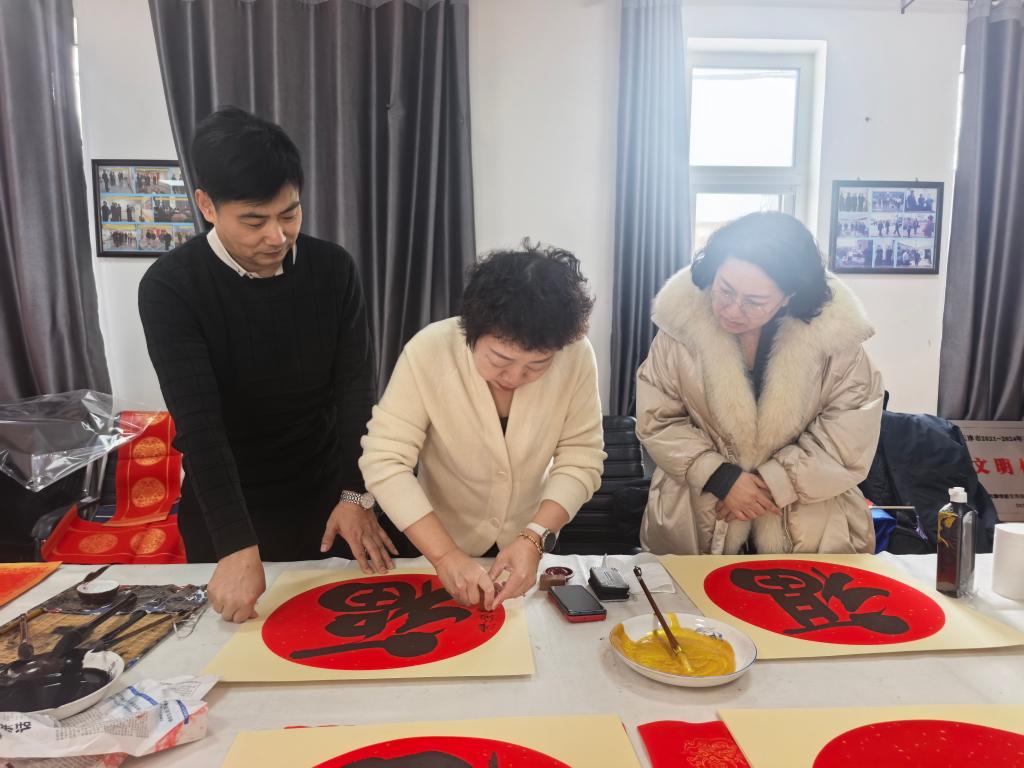 新华社天津2月21日电(记者栗雅婷)红色宣纸整齐铺展,毛笔蘸满浓墨,来自天津市静海区书法家协会的书法家们挥毫泼墨,笔力遒劲,一句句饱含吉祥寓意的春联、一个个端庄大气的“福”字跃然纸上。春节前,这些年味儿满满的书法作品和红底烫金的“美好家庭”牌匾一起被送到了天津市静海区吕官屯村6户村民的家中,稳稳挂上了农家院的大门。
