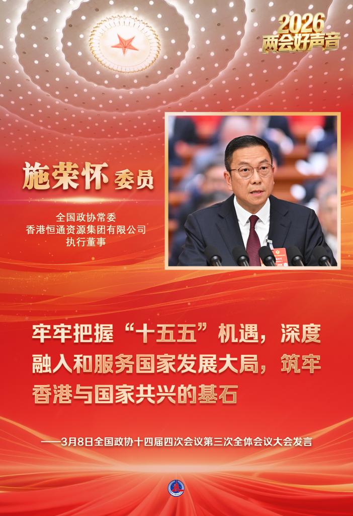 两会现场速递丨全国政协委员施荣怀:深入推动香港更好融入和服务国家发展大局