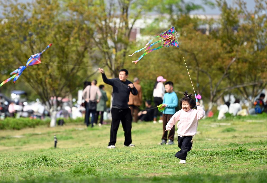 3月21日,小朋友在四川省南充市蓬安县相如故城上林园放风筝。新华社发(刘永红摄)