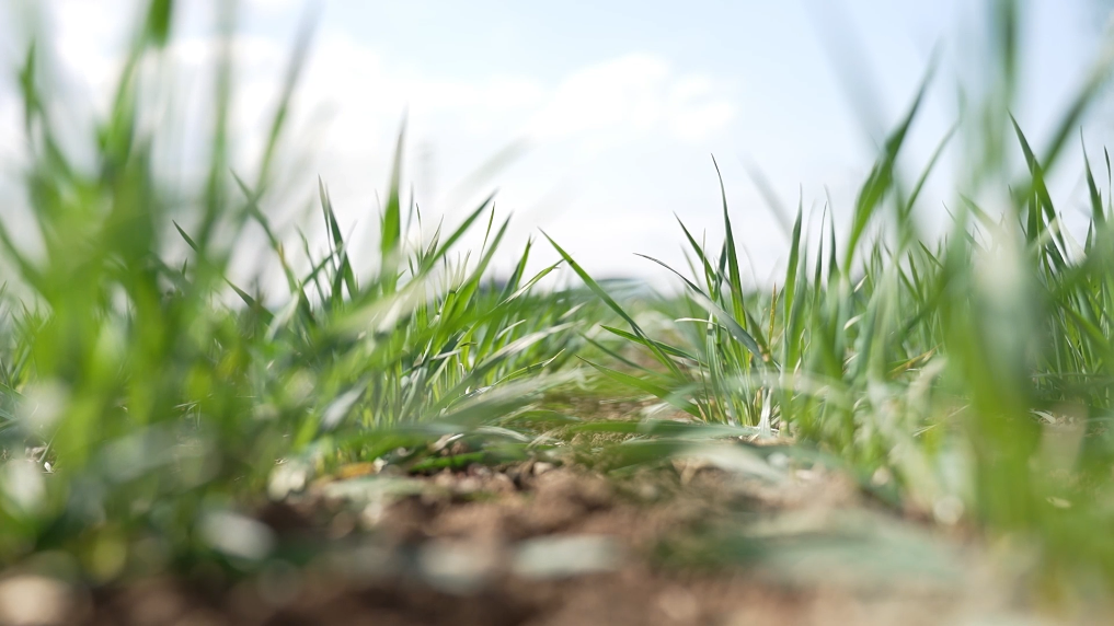 沧州渤海之滨的盐碱滩上,旱碱麦正茁壮生长。