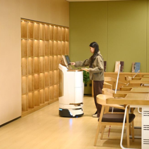 市民在雄安图书馆体验智能送书机器人(3月25日摄)。作为雄安新区首个城市级公共文化地标,雄安图书馆以智能化服务,为读者提供便捷阅读的新场景。新华社记者 朱旭东 摄