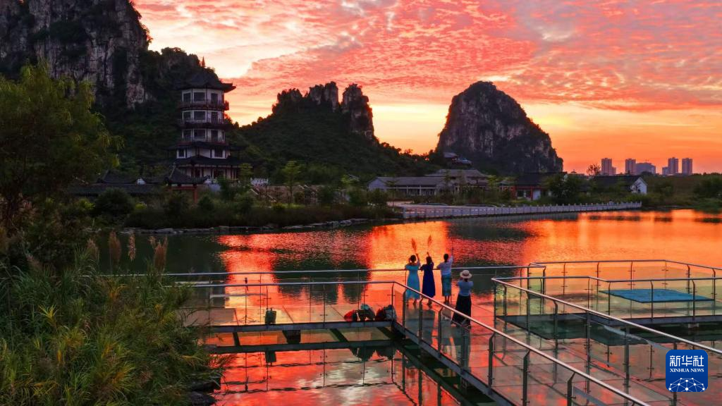 这是2025年9月27日在贵港一处湖泊拍摄的晚霞。 新华社发(刘志宁 摄)