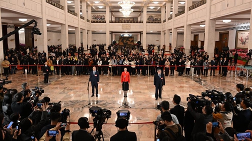 - 3月4日14时,人民大会堂中央大厅迎来全国政协十四届四次会议首场“委员通道”。9位全国政协委员相继步入,面对记者们,用一个个生动的故事、一组组翔实的数据,展现我国日新月异的发展。