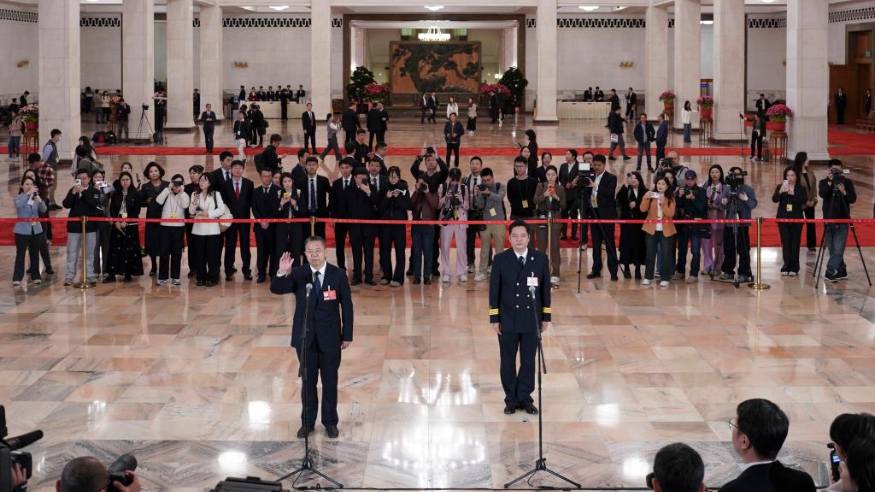 - 5日上午8时许,人民大会堂中央大厅北侧,十四届全国人大四次会议首场“代表通道”如期开启。6位来自不同领域的全国人大代表面对记者分享奋斗故事,畅谈履职心声,彰显使命担当。