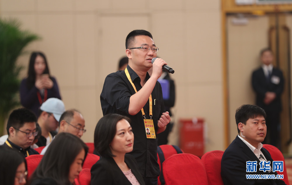 9月27日,庆祝中华人民共和国成立70周年活动新闻中心在梅地亚中心二层新闻发布厅举办第三场新闻发布会,中央农村工作领导小组办公室主任、农业农村部部长韩长赋,国务院扶贫开发领导小组办公室主任刘永富介绍全面建成小康社会,扎实推进脱贫攻坚和乡村振兴,并回答记者提问。图为媒体记者提问。新华网 陈杰 摄