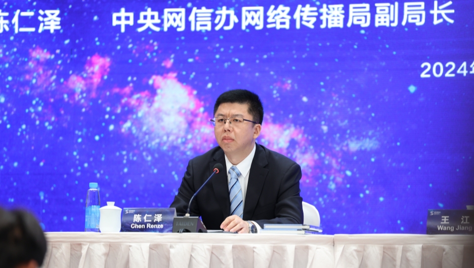 中央网信办网络传播局副局长陈仁泽主持新闻发布会