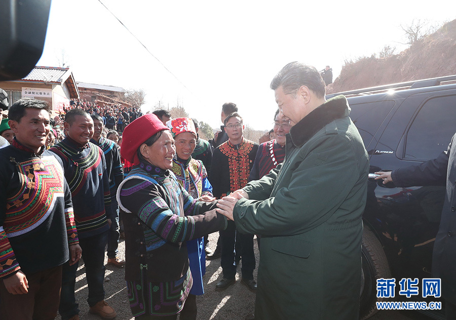 2月11日,中共中央总书记、国家主席、中央军委主席习近平在四川考察。这是习近平在凉山彝族自治州昭觉县三岔河乡三河村同乡亲们道别。新华社记者 谢环驰 摄
