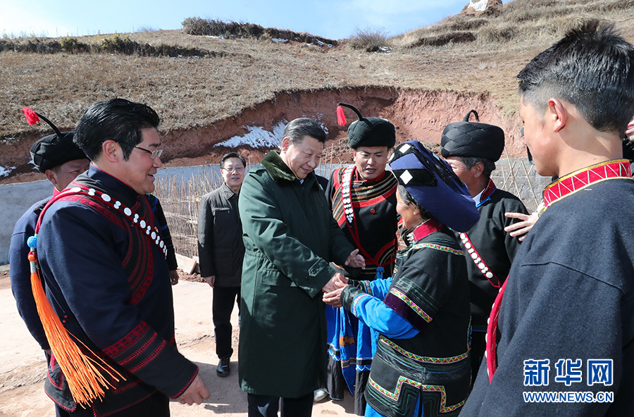 2月11日,中共中央总书记、国家主席、中央军委主席习近平在四川考察。这是习近平在凉山彝族自治州昭觉县解放乡火普村了解易地扶贫情况。新华社记者 谢环驰 摄