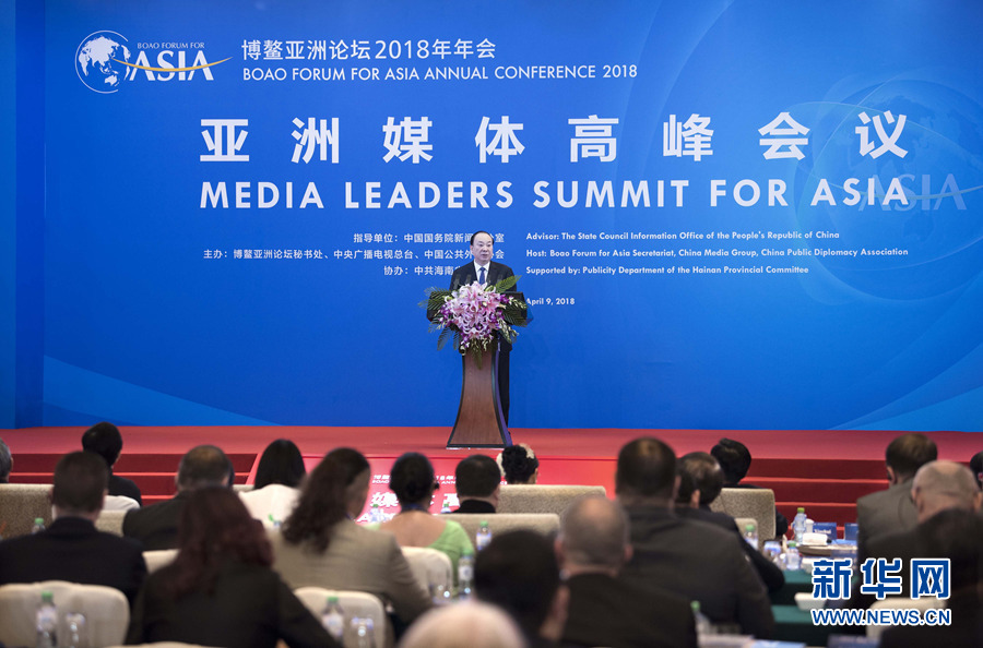 4月9日,以“亚洲媒体合作新时代——互联互通与创新发展”为主题的亚洲媒体高峰会议在海南三亚举行。中共中央政治局委员、中宣部部长黄坤明出席开幕式并发表题为“弘扬开放创新精神,共促亚洲繁荣发展”的主旨演讲。新华社记者 李涛 摄