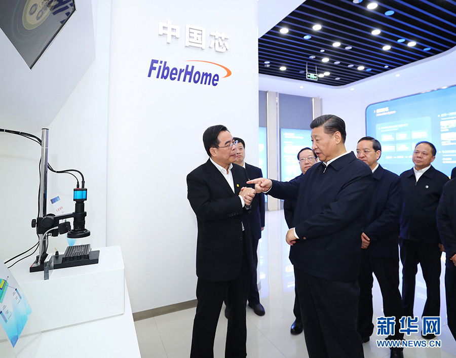 4月26日上午,中共中央总书记、国家主席、中央军委主席习近平在烽火集团有限公司考察。 新华社记者 谢环驰 摄