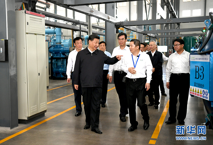 5月20日至22日,中共中央总书记、国家主席、中央军委主席习近平在江西考察,主持召开推动中部地区崛起工作座谈会并发表重要讲话。这是习近平在江西金力永磁科技股份有限公司考察,了解企业生产经营情况。 新华社记者 谢环驰 摄