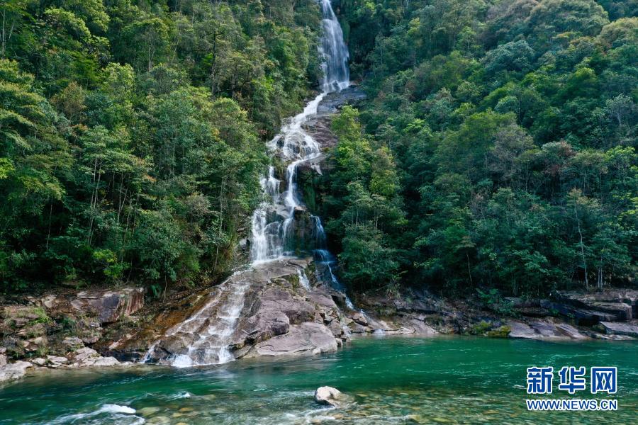 这是2020年4月1日拍摄的武夷山国家公园内的瀑布清溪(无人机照片)。新华社记者 姜克红 摄