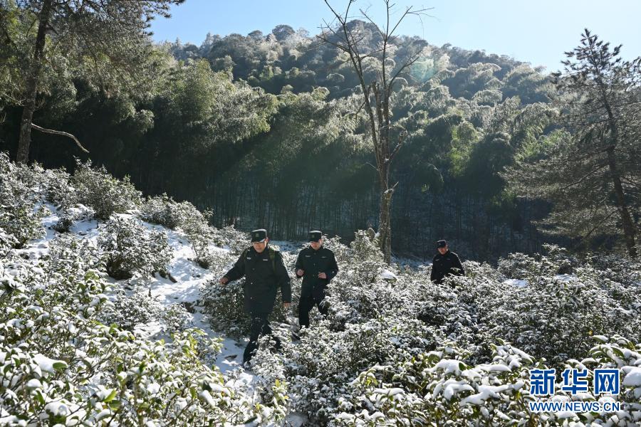 1月8日,工作人员雪后在武夷山国家公园桐木关附近巡山。新华社记者 姜克红 摄