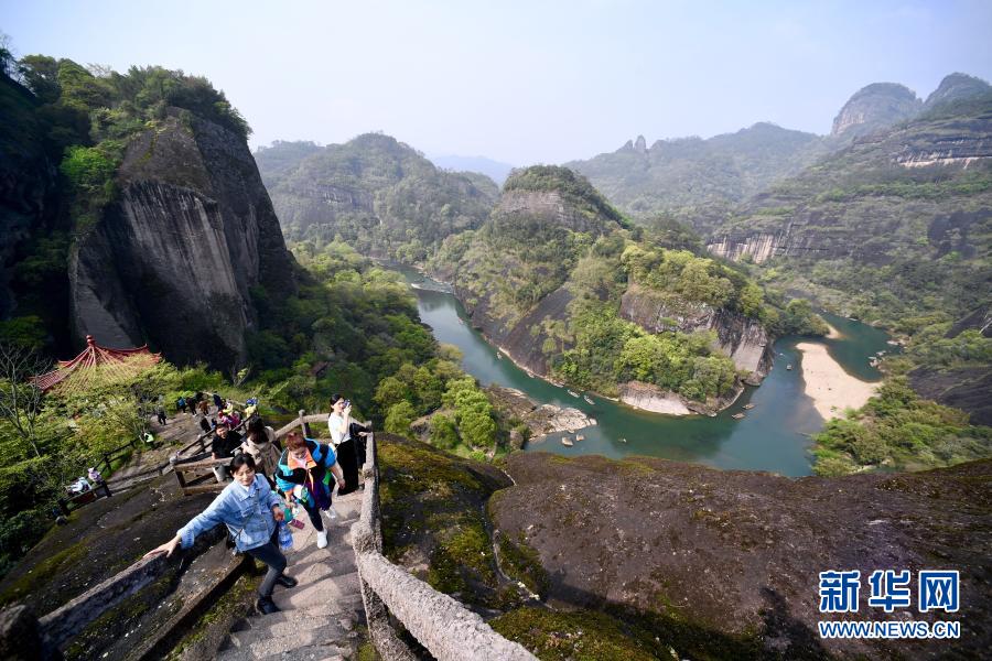 3月22日,游客在武夷山国家公园天游峰景区登山赏景。新华社记者 姜克红 摄