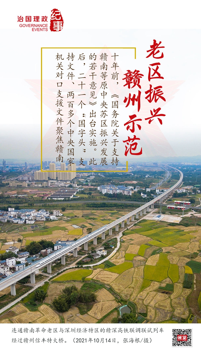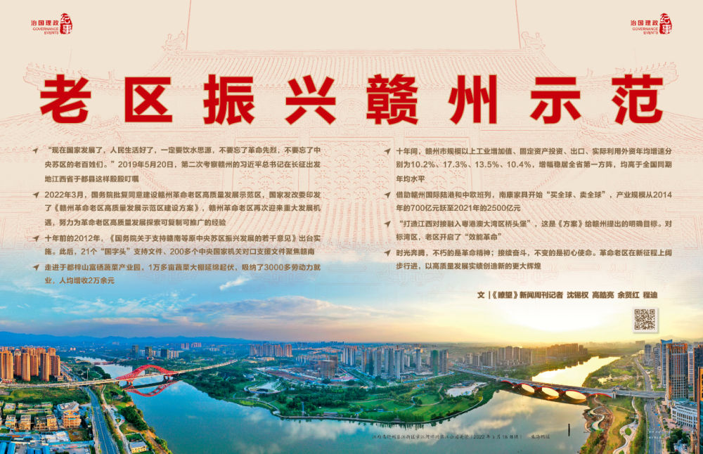 ◆ 2022年3月,国务院批复同意建设赣州革命老区高质量发展示范区,国家发改委印发了《赣州革命老区高质量发展示范区建设方案》,赣州革命老区再次迎来重大发展机遇,努力为革命老区高质量发展探索可复制可推广的经验