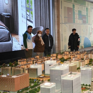 购房者在河北雄安新区某项目售楼部查看沙盘(2月25日摄)。新华社记者 朱旭东 摄