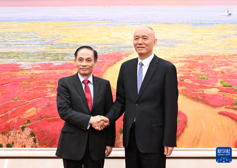 3月22日,中共中央政治局常委、中央书记处书记蔡奇在北京会见由越南共产党中央书记处书记、中央对外部部长黎怀忠率领的代表团。新华社记者 申宏 摄