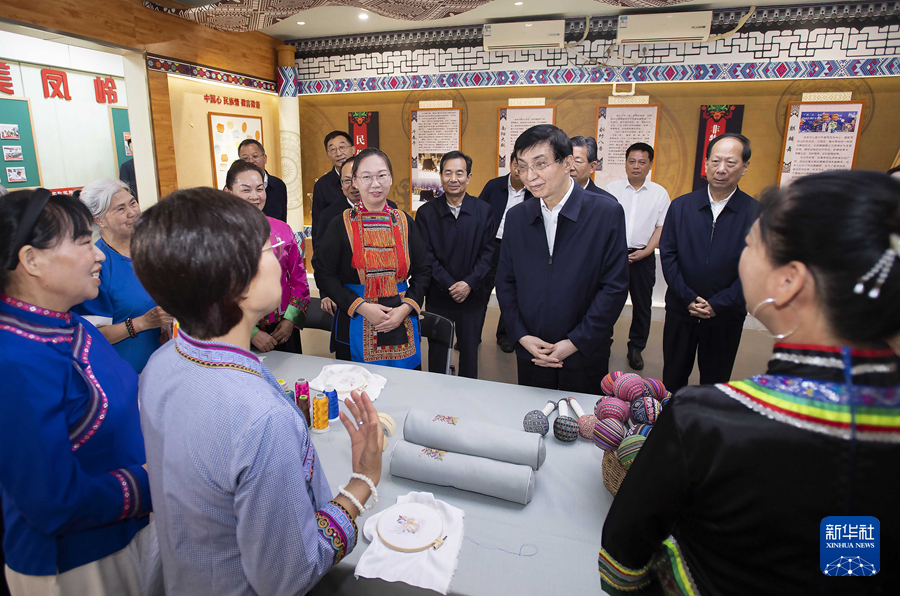 5月6日至8日,中共中央政治局常委、全国政协主席王沪宁在广西调研。这是5月6日,王沪宁在崇左市江州区新和镇卜花村走访看望群众。新华社记者 李涛 摄