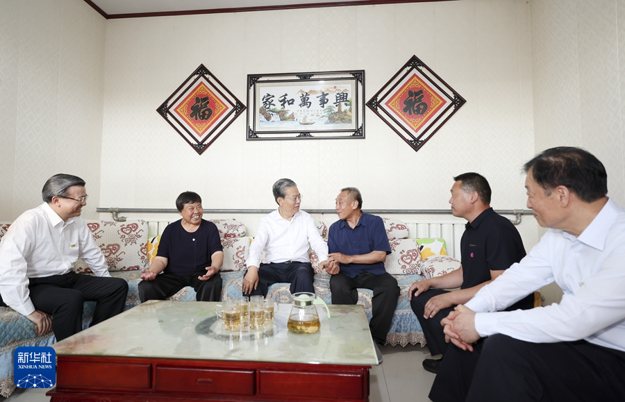 6月2日至4日,中共中央政治局常委、全国人大常委会委员长赵乐际在河北调研。这是6月3日,赵乐际在河北省邢台市信都区羊范镇祁村调研,走访农户。新华社记者 丁海涛 摄