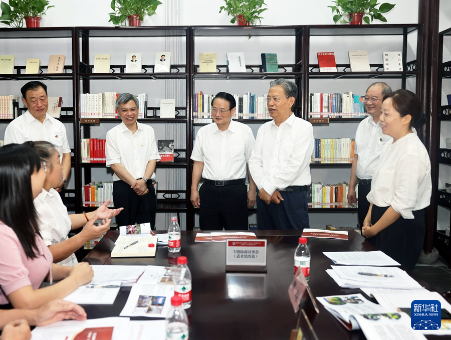 8月28日至30日,中共中央政治局常委、全国人大常委会委员长赵乐际在浙江、上海调研。这是8月29日,赵乐际来到上海虹桥街道古北市民中心,了解全国人大常委会法工委基层立法联系点、虹桥街道全过程人民民主基层实践基地工作情况。新华社记者 刘卫兵 摄