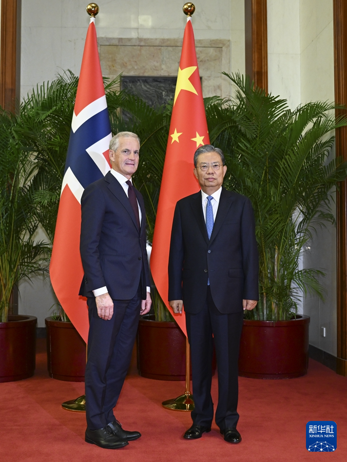 9月9日下午,全国人大常委会委员长赵乐际在北京会见挪威首相斯特勒。新华社记者 张领 摄
