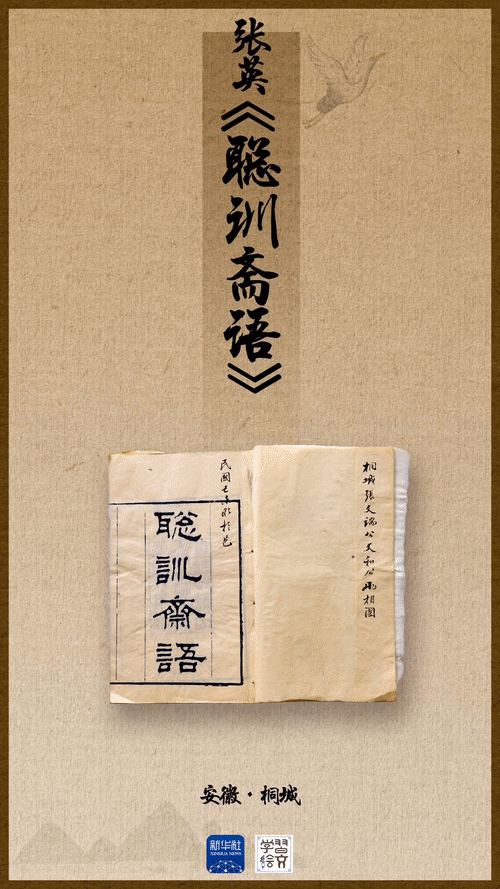 清代大学士张英是桐城派文学思想重要的传播者和文学创作的实践者之一。他所撰写的家训《聪训斋语》是以自己为人处世的经历体会,教训子孙持家、读书、立身、做人之箴言,承载着桐城文脉中流淌的历史智慧和优良家风。