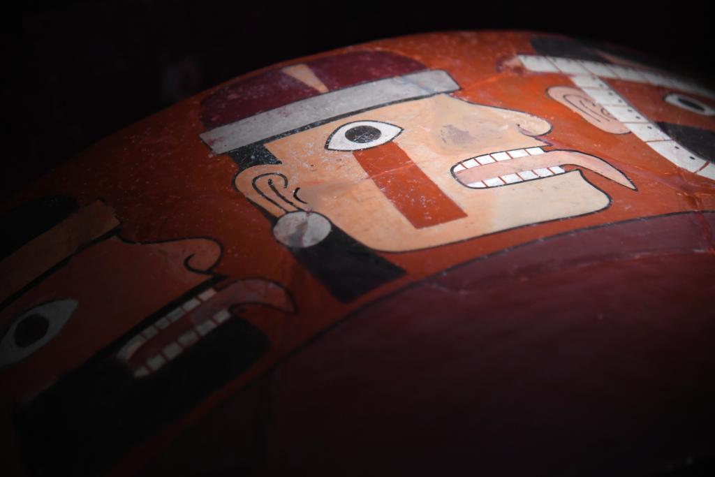 2023年6月10日,这是在陕西历史博物馆展出的秘鲁文物俘虏人头陶碎片。新华社记者李一博摄