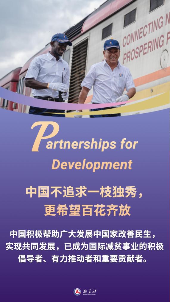 中国致力于消除自身贫困的同时,积极推进南南合作,建立以合作共赢为核心的新型国际减贫伙伴关系。中国向160多个国家提供发展援助,同150多个国家携手共建“一带一路”,同100多个国家和联合国等多个国际组织推进全球发展倡议合作,投入并动员近200亿美元发展资金,开展了1100多个项目,以实际行动为全球南方国家发展振兴注入动力。