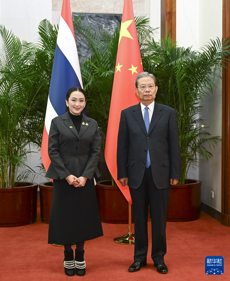 2月6日上午,全国人大常委会委员长赵乐际在北京会见泰国总理佩通坦。新华社记者 张领 摄