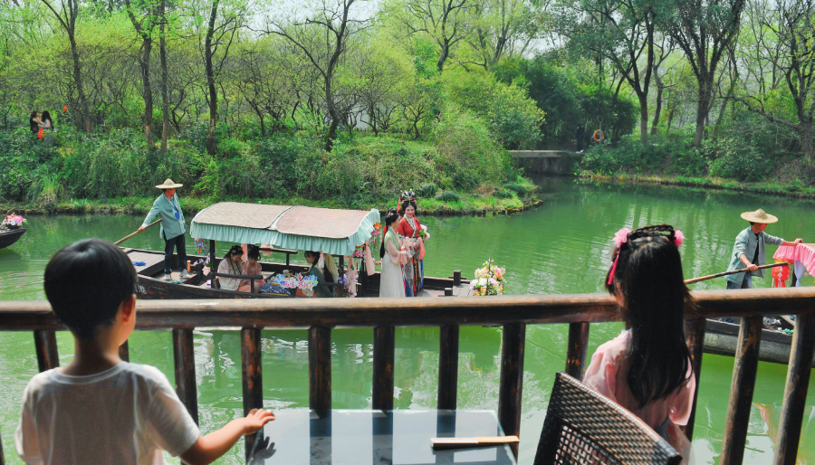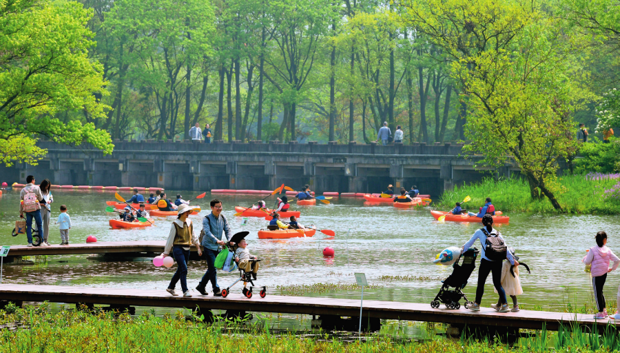 游人在西溪湿地游玩(2023年4月2日摄)翁忻旸摄/本刊