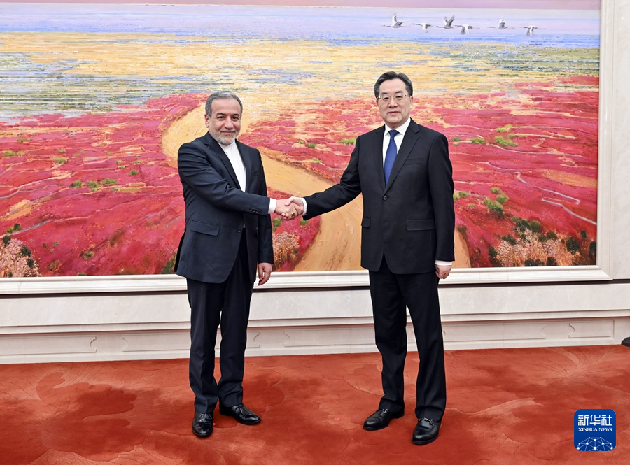 4月23日,中共中央政治局常委、国务院副总理丁薛祥在北京会见伊朗外交部长阿拉格齐。新华社记者 殷博古 摄