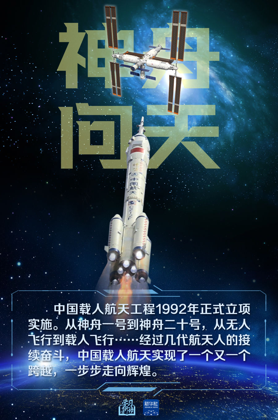 一次次壮丽飞行,在通往太空的征途中描绘出最美的中国航迹。逐梦九天不止步,星辰大海的征途上,中国人探索太空的脚步必将迈得更稳更远。