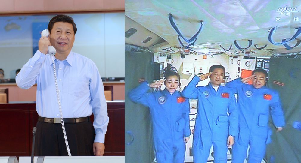 时隔10多天后,总书记来到北京航天飞行控制中心,同正在天宫一号执行任务的神舟十号3名航天员亲切通话。总书记勉励3名航天员说:“这次载人航天飞行,你们身上体现出了不畏艰险、勇于探索的意志品质,这种宝贵的意志品质对全国人民都是启示和鼓舞。”